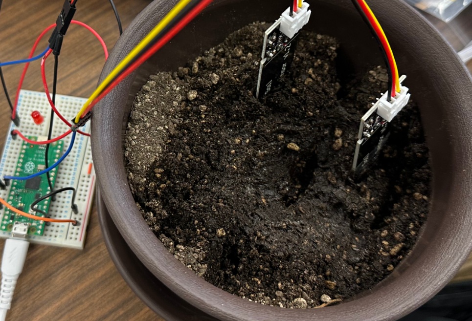 •1か月間、試験用の鉢に水分センサを設置
